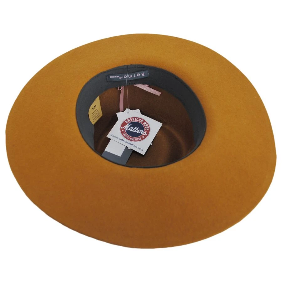 Betmar’s Georgia Wide Brim Wool Felt Fedora Hat is made in the USA of 100% wool in a stiff finish. The lack of ‘frills and thrills’ allows for the stunning shape and material of the hat to speak for itself. In a plethora of fun and brillant colors, the Georgia is a great staple for any closet.