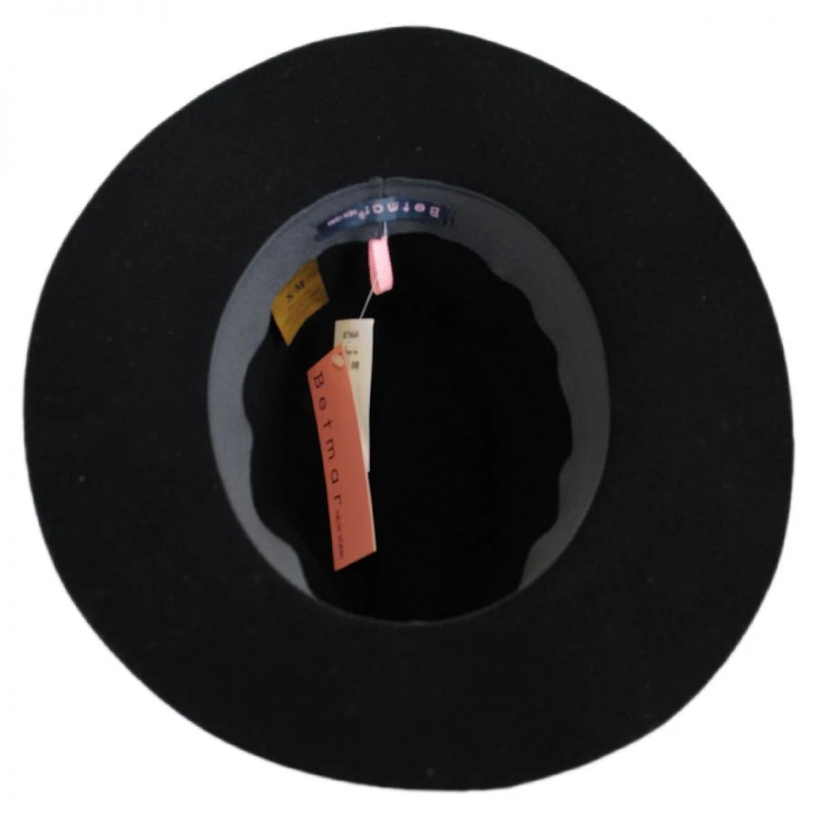 Featuring a luxurious velvet hat band and their famously soft, packable and water repellent LiteFelt® finish, the Izette II Wool Felt Fedora Hat by Betmar is a gorgeous new fedora style for women. Crafted in the USA of the finest wool, Betmar’s Izette II features a lustrous, brushed finish for superior softness. Its classic pinch front crown is accented with a tonal velvet hat band that gently pleats and folds over at the side; a small metallic Betmar side pin completes Izette’s sophisticated look. Finally, its ample brim features a sleek, raw edge brim that gently flops for a flirty and feminine touch.