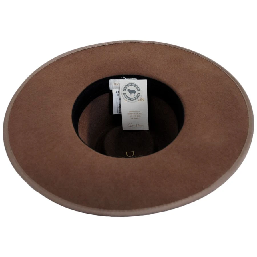 Made from wool that meets the Responsible Wool Standard for sustainability, the Jo Wool Felt Rancher Fedora Hat by Brixton Hats is a classic, sharp fedora with a grosgrain ribbon hat band and binding on the brim. With a first-rate look and feel thanks to the felt body, the fine design of the Jo includes a wide brim, teardrop crown, cotton twill sweatband and interior adjustable velcro strap for the perfect fit. An easy pair with any outfit!