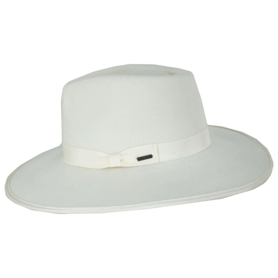 Made from wool that meets the Responsible Wool Standard for sustainability, the Jo Wool Felt Rancher Fedora Hat by Brixton Hats is a classic, sharp fedora with a grosgrain ribbon hat band and binding on the brim. With a first-rate look and feel thanks to the felt finish, the fine design of the Jo includes a wide brim, teardrop crown, cotton twill sweatband and interior adjustable velcro strap for the perfect fit. An easy pair with any outfit!