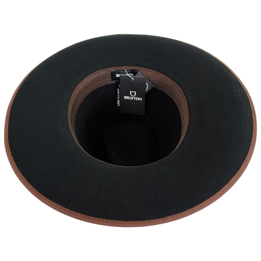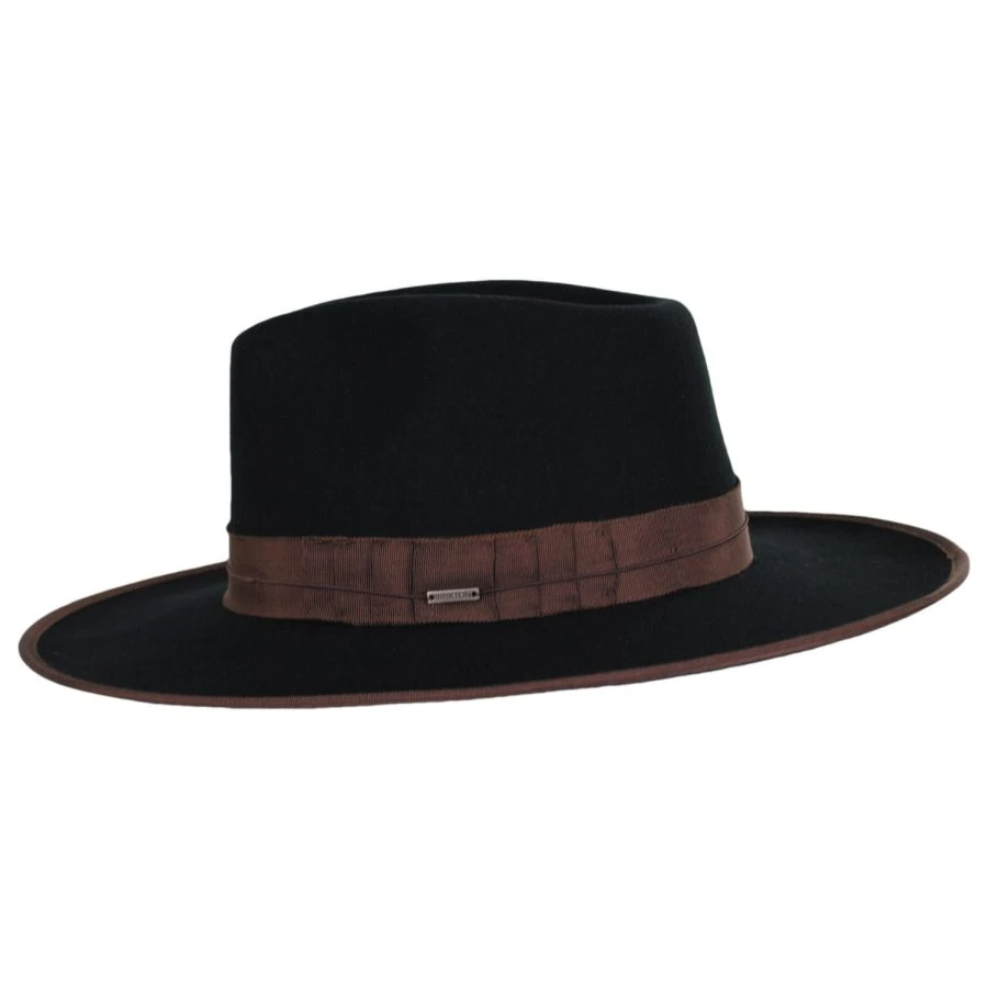 The Reno Wool Felt Fedora Hat by Brixton Hats will have you turning heads with its innovative and striking design. The Reno is made of 100% wool felt with a semi stiff finish. A grosgrain ribbon hat band is finished with pleated detailing on the left and a layered string accent. The brim is also trimmed in grosgrain ribbon. An adjustable velcro strap under the sweatband helps you can find the perfect fit!