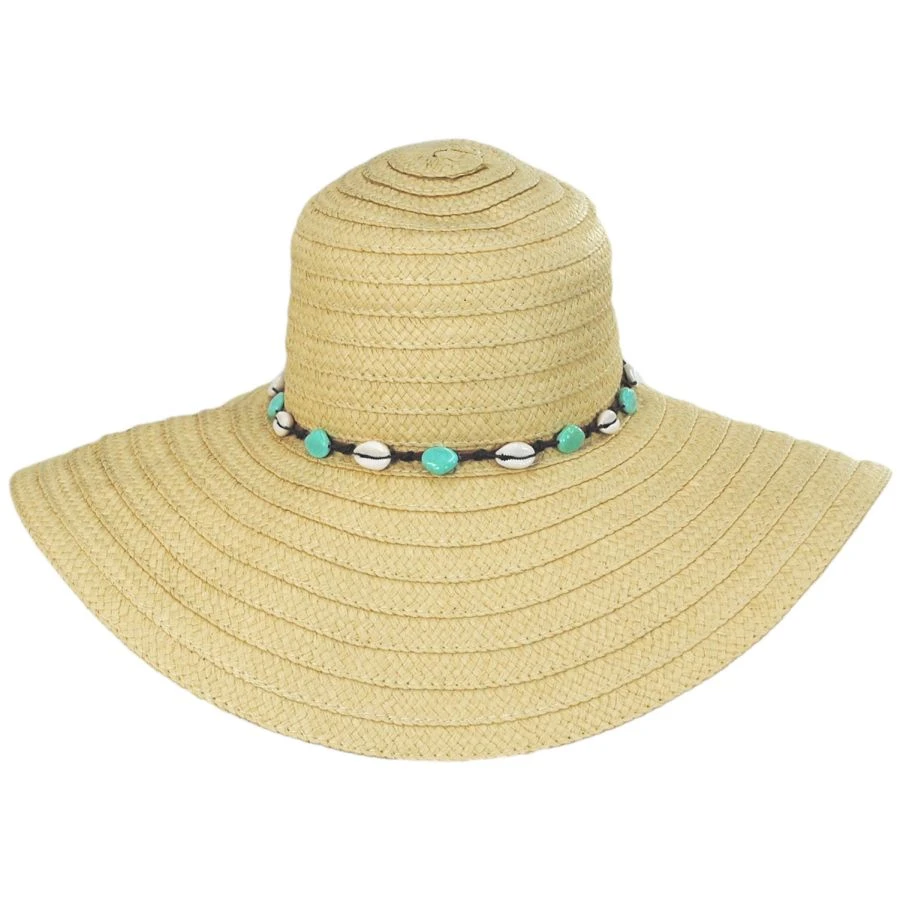 Cappelli Straworld’s Dover Braided Toyo Straw Sun Hat is the sun hat of your beach day dreams! Featuring a wax cord and faux leather layered hat band adorned with shells and faux turquoise beads. The body is a braided toyo straw with an extra wide floppy brim. The boho vibes just don’t quit!