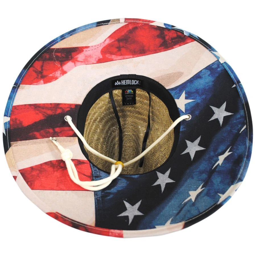 The new Youth Brave Straw Lifeguard Hat by Hemlock Hat Co features their classic straw lifeguard hat body but for youths! With a stars and stripes-themed trim, lining and Hemlock sewn patch. A chin cord with toggle adds protection during windy conditions; a stretchy and adjustable sweatband completes the style. Perfect for wearing poolside, at the beach, on a hike or anywhere else the sun shines.