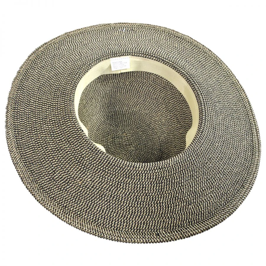 The braided toyo straw body has been infused with cotton and polyester for a tweed look in a straw hat! The braided and sewn materials create the distinguished speckled pattern. Take this hat with you when you travel, it’s packable!