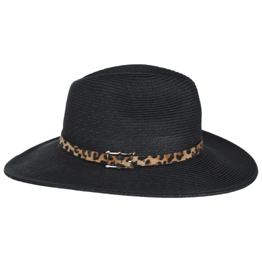 This hat will make you go out and explore on these summer days! Karen Keith introduces the Leopard Band Toyo Straw Safari Fedora Hat. Its UPF 50+ Sun Protection will cover you from the sun while keeping you stylish with a leopard hat band around the crown.