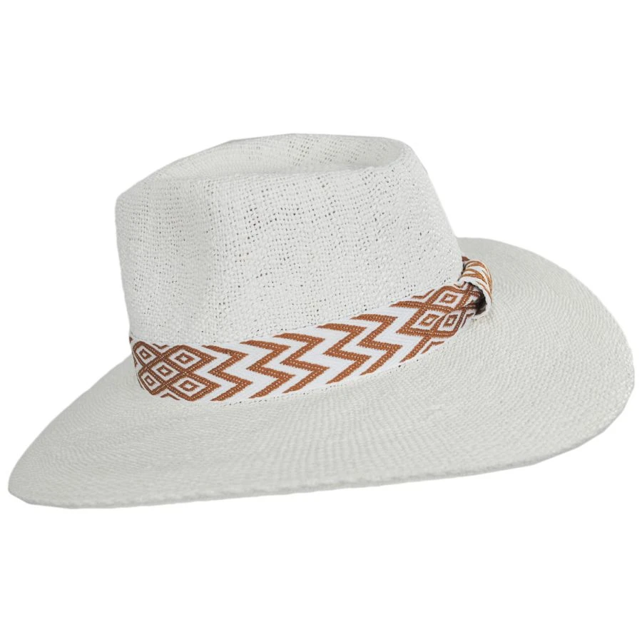 Nikki Beach’s Chelsea Toyo Straw Rancher Fedora Hat is a stunner! With a extra wide fabric hat band adorning the crown, this hat is sure to compliment any outfit. Made of 100% toyo straw and featuring a woven straw body, the Chelsea has a teardrop crown and downturned brim.