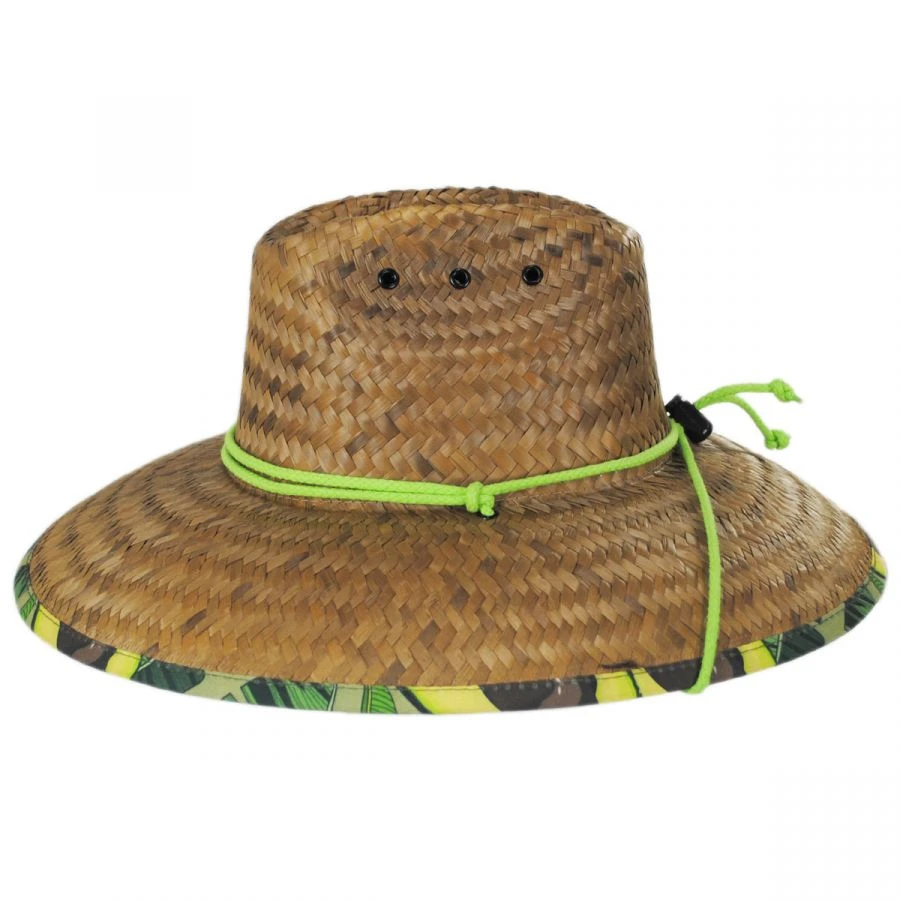 A lifeguard hat for all your sun activity needs, the Avocado Coconut Straw Lifeguard Hat by local San Diego company, Peter Grimm. Made of 100% coconut straw which has been constructed into a classic lifeguard hat design, the avocado-themed pattern on the under brim adds a touch of individuality. A functional hat band that also serves as a chin cord adds protection during windy conditions.