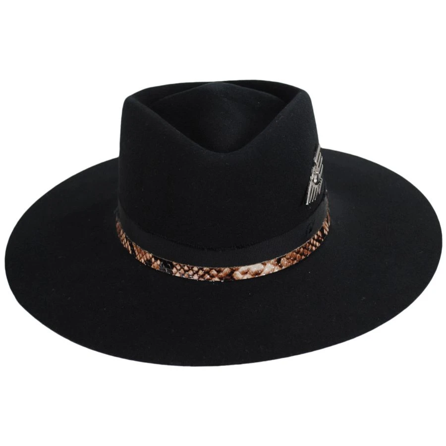 Renegade introduces a new shape with the Ember Wool Felt Cross Crown Rancher Hat. The Renegade cross crown is identical to a diamond crown, which creates a low profile crown. This unique crown sits atop a flat wide brim that helps to showcase the hand distressed grosgrain ribbon hat band with a colorful leather overlay. The firebird accent pin compliments the textures and hues of the double layer hat band.