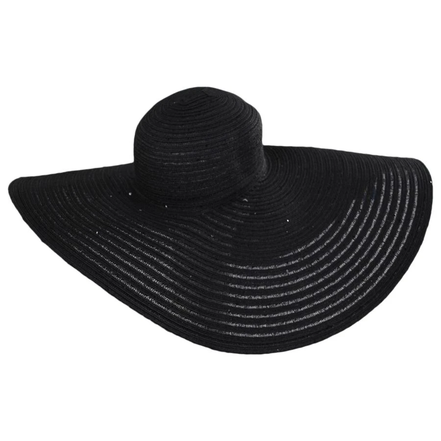 Now here’s a hat we are brimming with excitement over, the Santa Rosa Asymmetrical Brim Toyo Straw Sun Hat by San Diego Hat Company. Made of a toyo straw blend, this a traditional floppy with a little extra love…a brim measuring 9 7/8″ at its widest. The asymmetrical design and sequins complete this dramatic look.